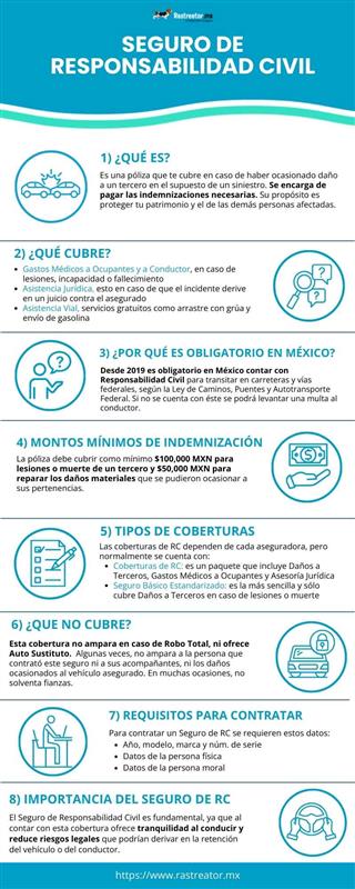Cabe destacar que la cobertura de Responsabilidad Civil en el Seguro de Auto es de las más conocidas en México, ya que desde el año 2019 es obligatoria para todos los vehículos que circulan por carreteras federales, con base en la Ley de Caminos, Puentes y Autotransporte Federal. Asimismo, el Seguro de Auto de Responsabilidad Civil es obligatorio en 19 estados de la República Mexicana, entre estos el Estado de México y la Ciudad de México, según sus leyes locales.